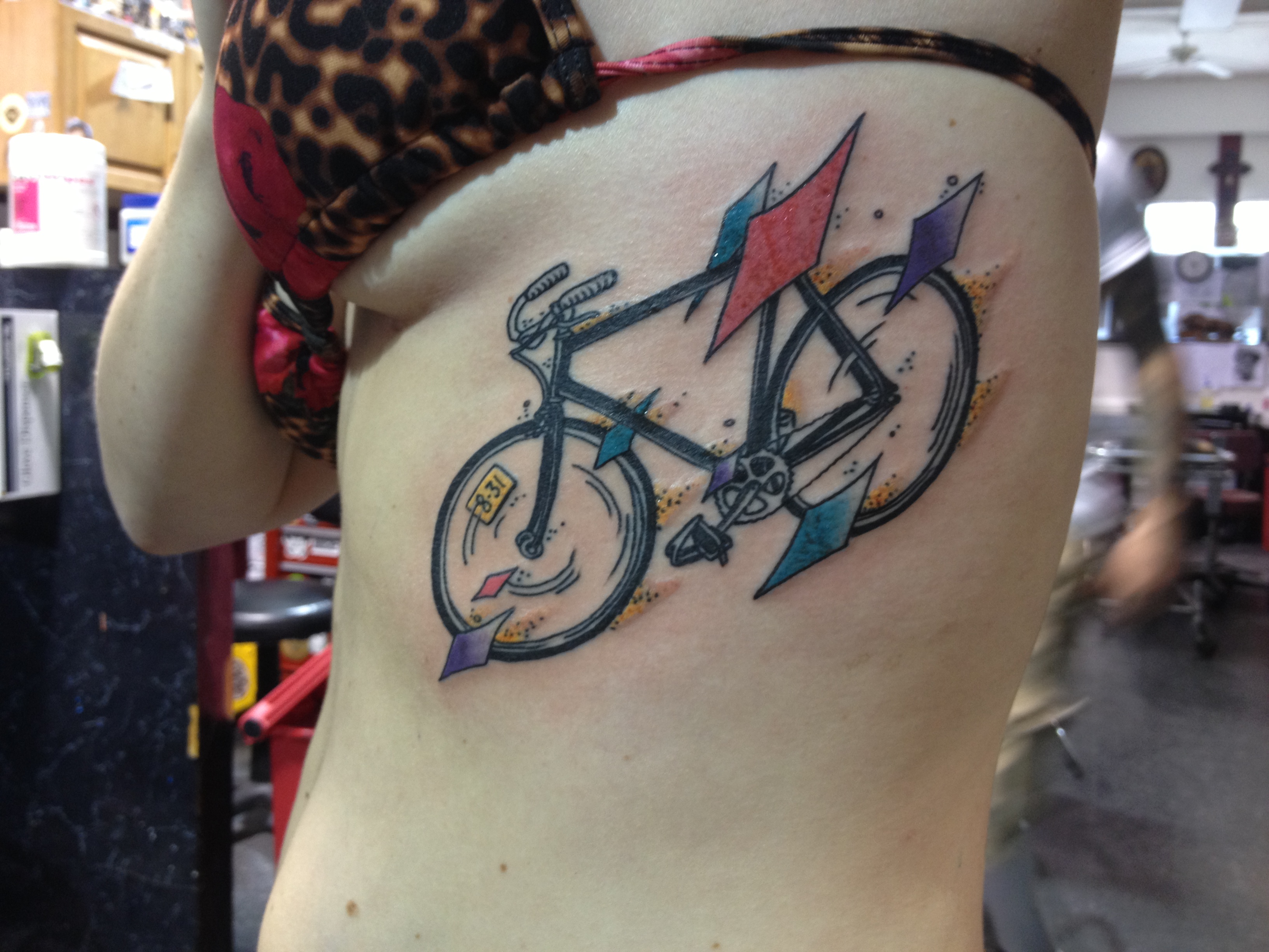 This week I got a new tattoo, and it’s even more fitting now. The bike represents my ride last summer from Washington DC to Cincinnati, OH which lead me to diagnosis, as well as the biggest lesson I’ve learned–life is about the journey, not the destination; the date on the card in the spokes was my first surgery (8-31); and the colors are the thyroid cancer colors.
