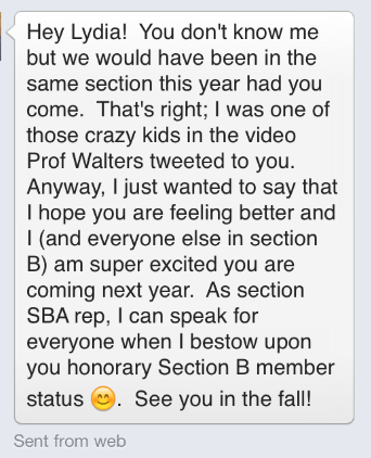I was sick to my stomach excited to see everyone! I am extremely thankful, however, that people weren’t expressing pity when they saw me, but instead reciprocated the pure excitement I felt (THANK YOU!). At the same time, I had so many heart-felt conversations with people who have been following my story. Three people in particular offered so much love and support that I would have never anticipated. I am blessed (have I said that enough lately? 🙂 )