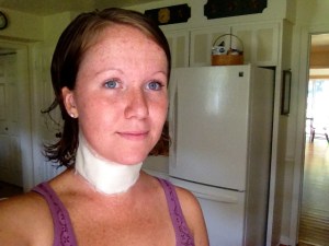 Day 13, It’s still healing very nicely, though I’m starting to get some serious stiffness in the back of my neck from the lack of use of the front muscles of my neck.