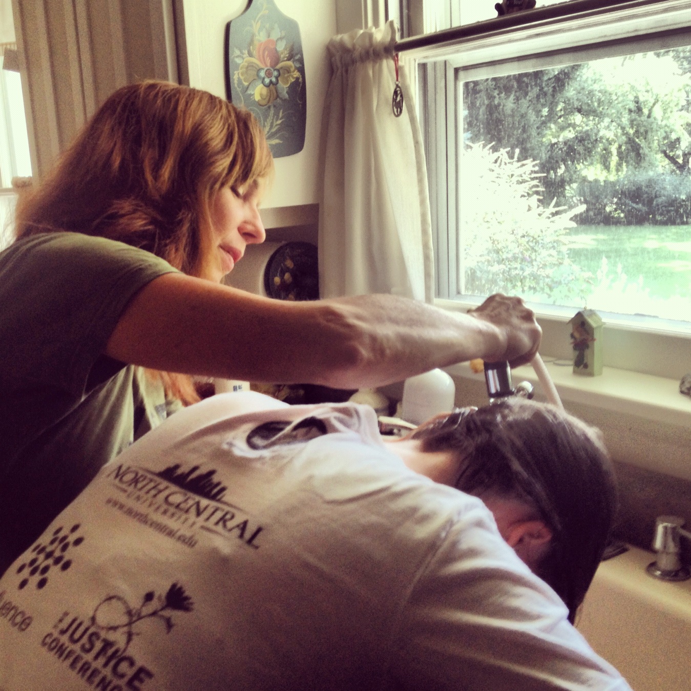 Day 5, Mom helping me wash my hair when I wasn’t allowed to get the incision wet.