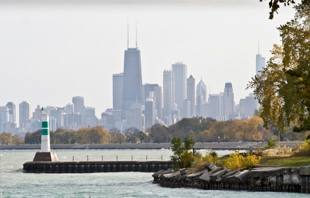View of the Chicago skyline from Montrose Harbor. (Lydia Ness; Oct. 16, 2012)